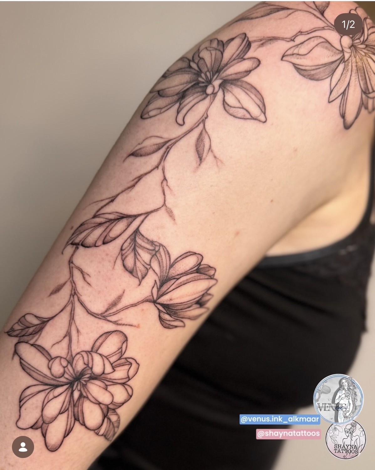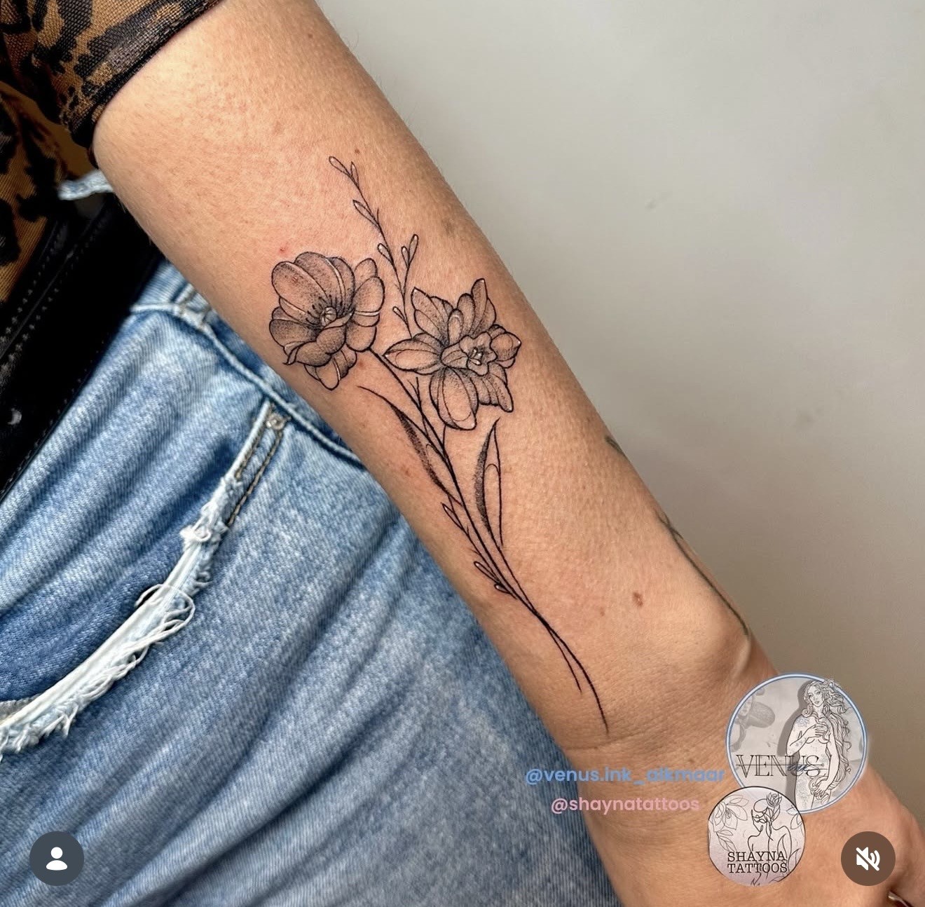 A classic choice... Of je nou denkt aan een geboortebloem, boeket of hele slinger om je arm ik zorg altijd dat je bloemen met je spieren mee vormen als een permanent sieraad.